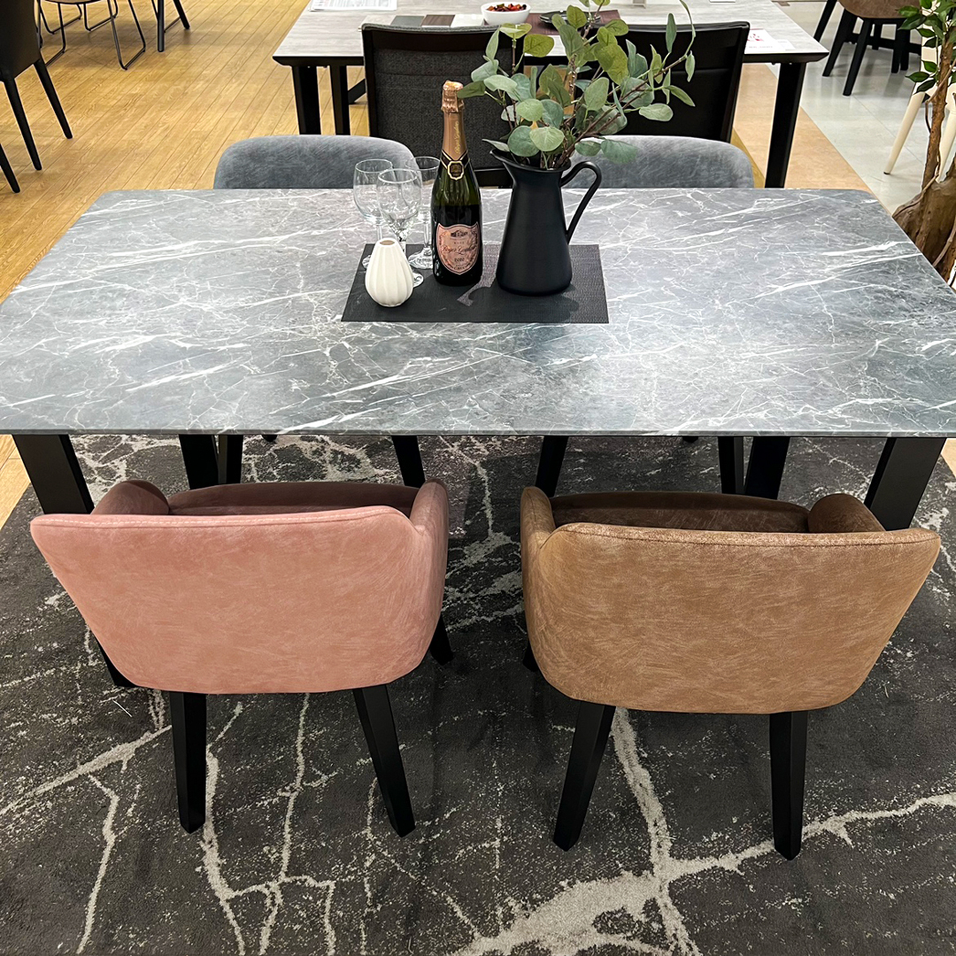 【ロージー】の天板にはメラミンを特殊工法で圧着させたもので、通常のメラミン素材よりも堅く、セラミックよりも軽い新素材『MELAMINITE』(メラミナイト)を使用しています✨
