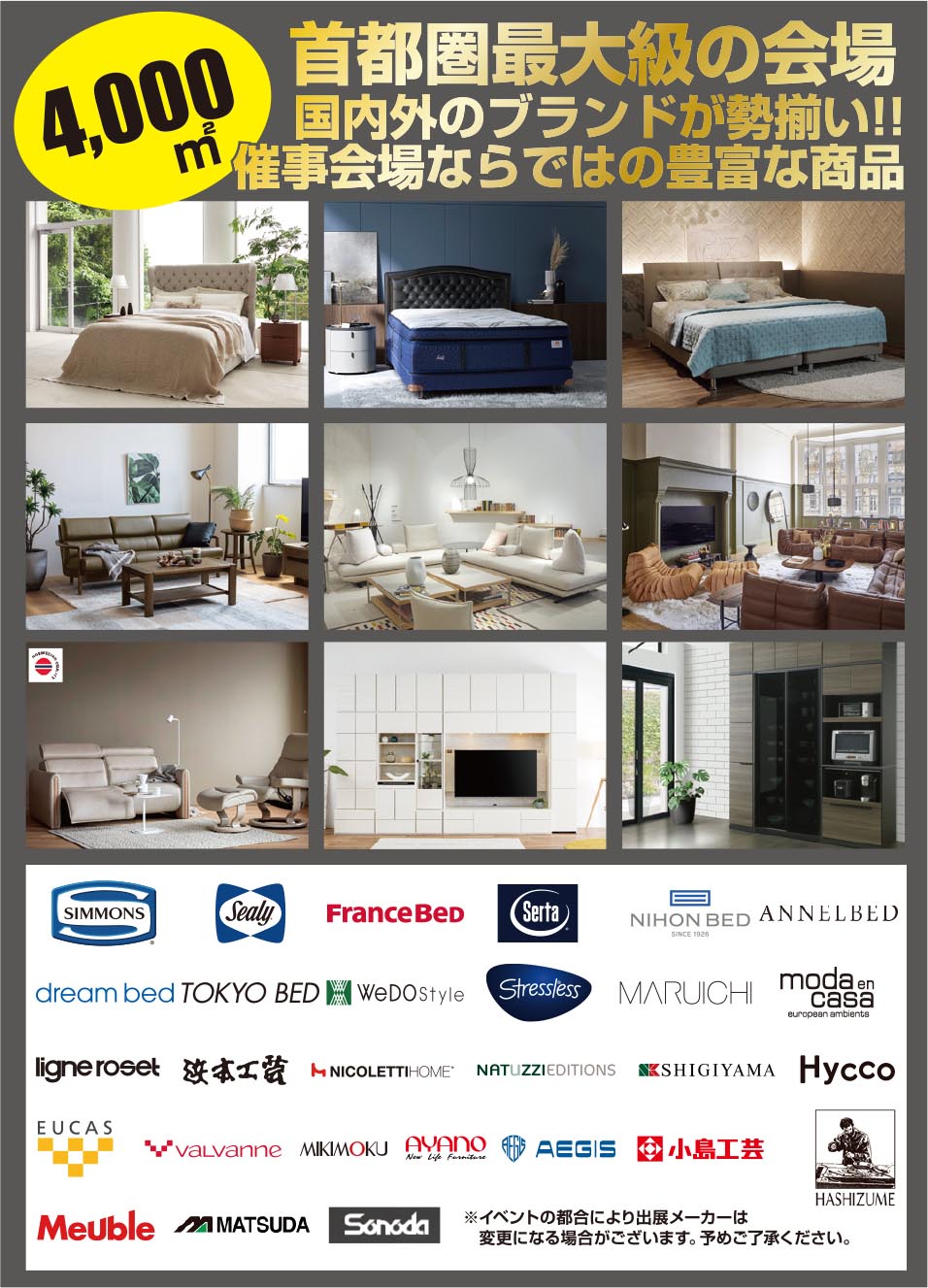 ※ダイニングセット(テーブル+イス)、ベッド(フレーム+マット)は1セットとします。※アウトレット商品は対象外となります。※他の割引サービスと併用できません。詳しくは会場スタッフにお尋ねください。